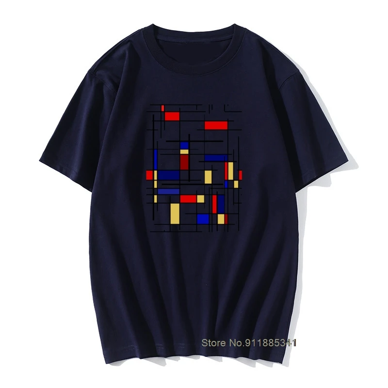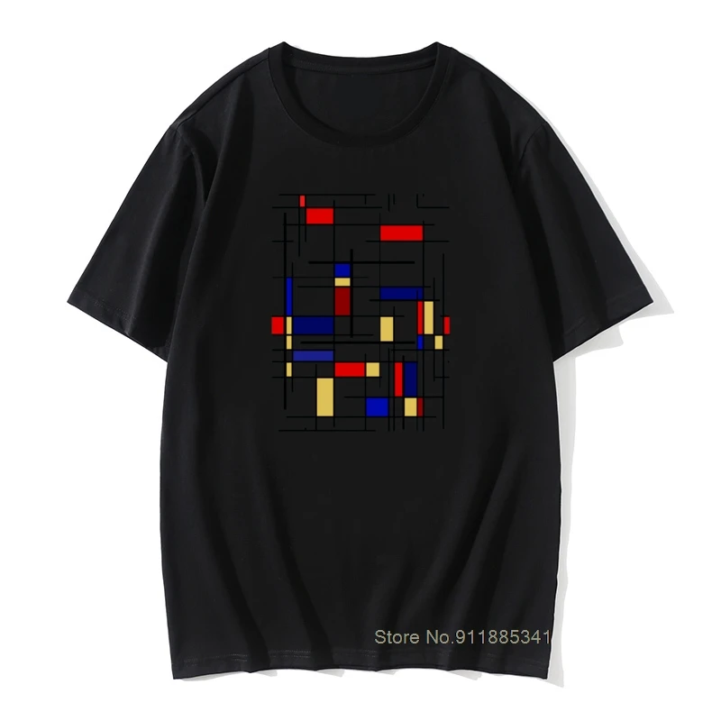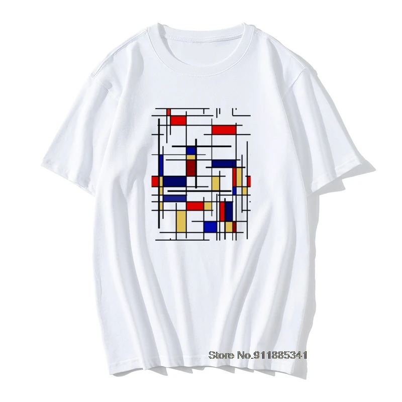 Европейские Mondrian рисунок графики на челюсти Hate Лето Осень Топы Рубашки Специальный Круглый вырез Чистый хлопок Футболка мужская футболка