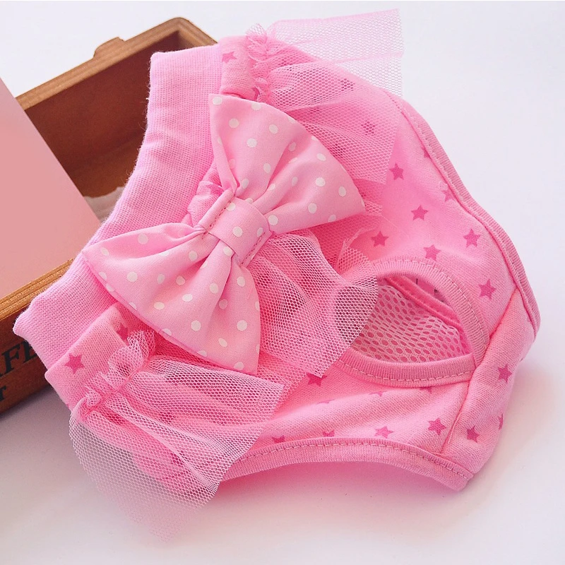 Милые Кружевные штаны для гигиены менструации домашних животных, многоразовые гигиенические подгузники для собак, моющиеся женские шорты для собак, нижнее белье, трусы