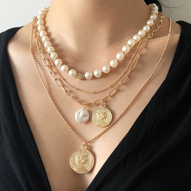 Жемчужное ожерелье для женщин, цепочка на шею, бусины-бабочки кулон с портретом, чокер из кубинской цепи, золотые ювелирные изделия, подарок для девушки