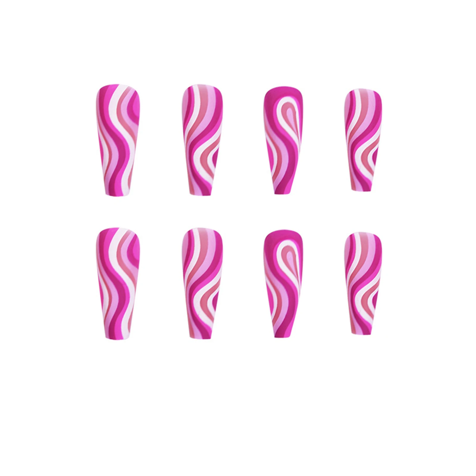 Накладные ногти, 24 шт., в стиле хип-хоп, уличный дизайн, розовый длинный гроб, накладные ногти с волнистым узором, полное покрытие, квадратные накладные ногти