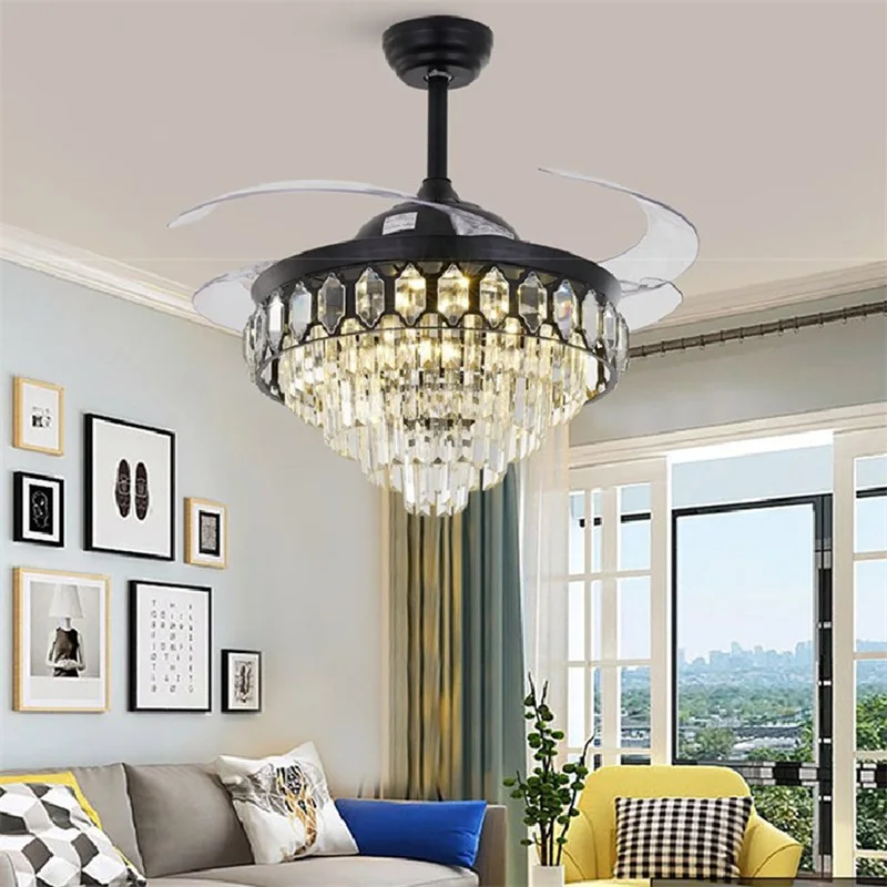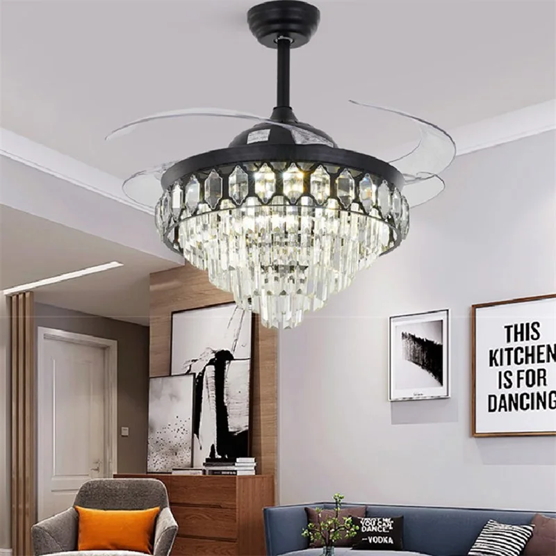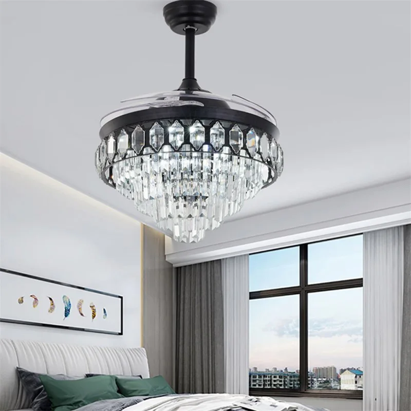 Потолочный светильник с вентилятором, невидимая светодиодсветодиодный лампа с кристаллами и дистанционным управлением, современный роскошный для дома, 8 м