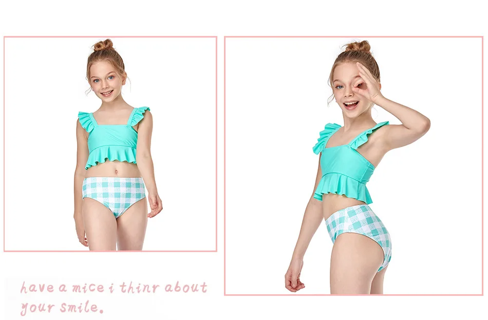 Клетчатый Купальник для девочек, купальник из двух частей, Детская ...