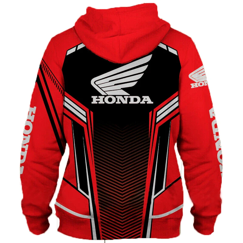 Новинка 2021, толстовка для мотоцикла Honda, толстовка с капюшоном на молнии с 3D-принтом крыла автомобиля, мужская спортивная одежда, куртка для гонок, Мужская Красная толстовка