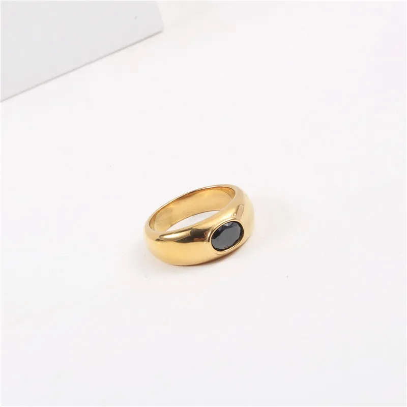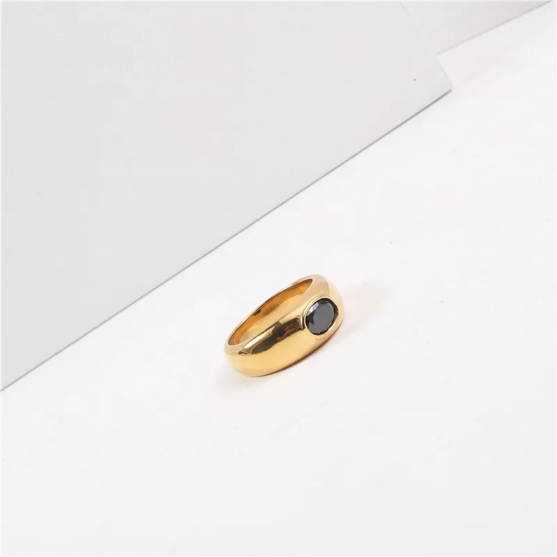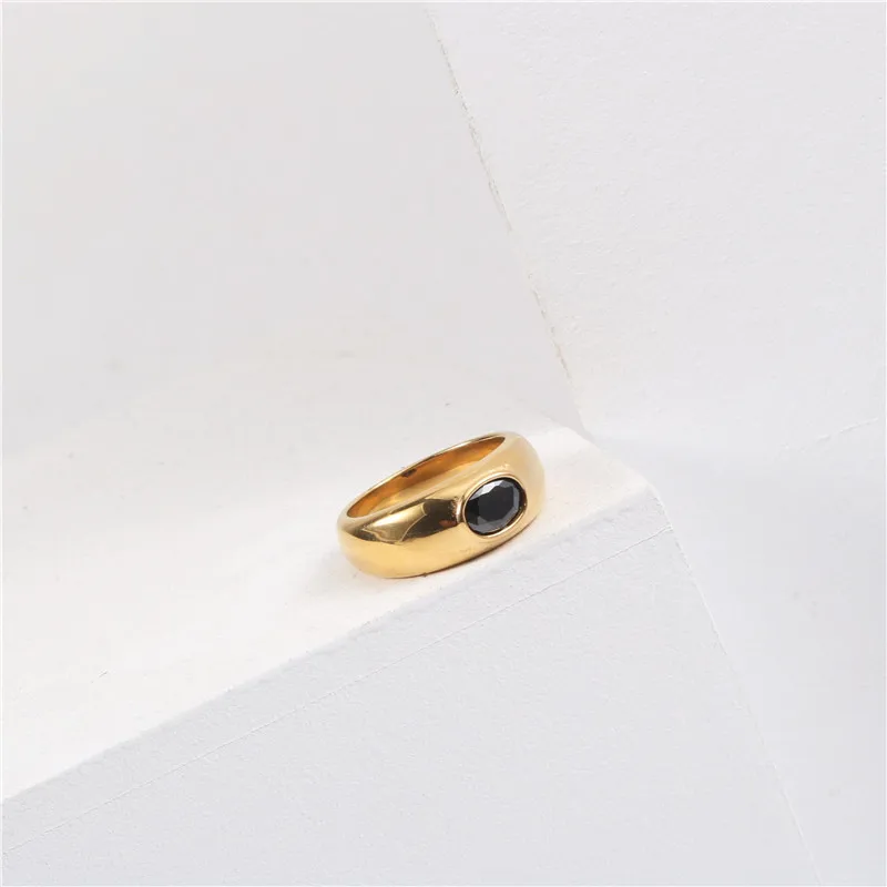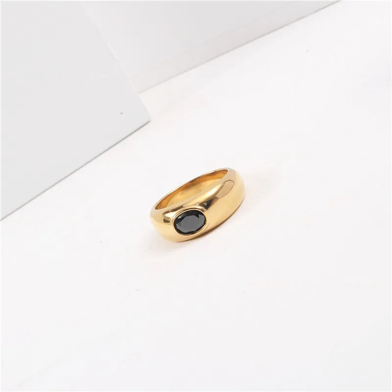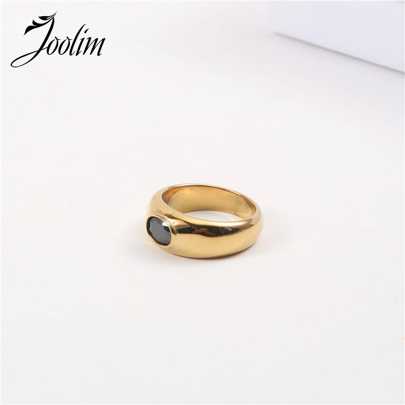 Joolim высококачественные 18K золотые PVD черные хрустальные кольца для женщин ювелирные изделия из нержавеющей стали оптом