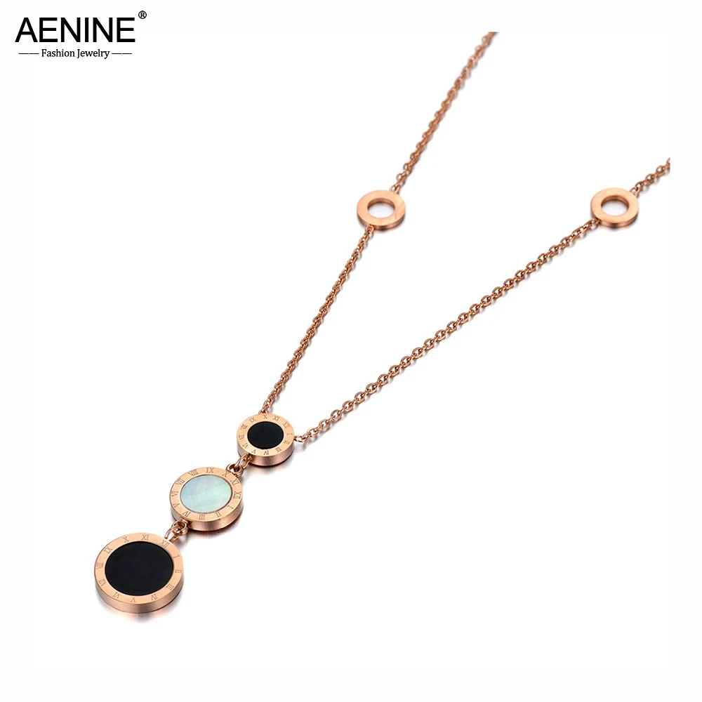 Женское винтажное ожерелье-чокер AENINE с римскими цифрами из нержавеющей стали, ожерелье с подвеской в виде ракушки и звеньями, ювелирное изделие AN20051