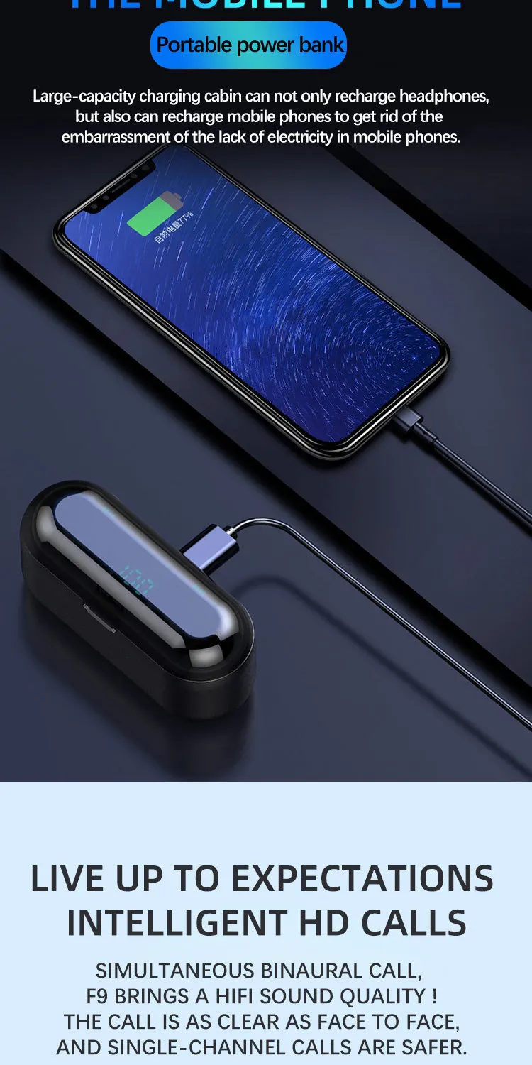 Беспроводные мини-наушники F9-2, TWS Hi-Fi стереогарнитура с шумопо...