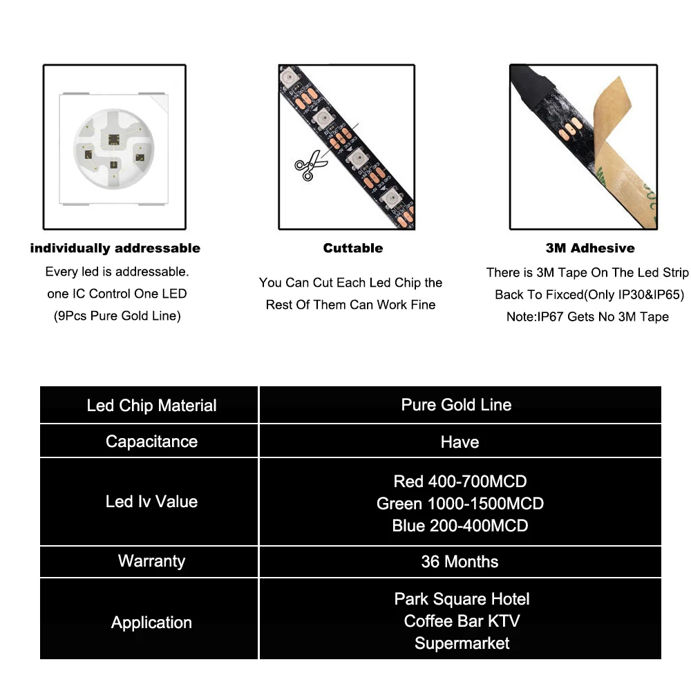 Тип IC: улучшенная версия WS2812 IC (Встроенный светодиодный индикатор 5050SMD RGB)