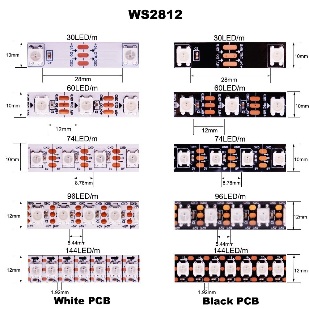 WS2812 WS2812b умная RGB Светодиодная лента индивидуально адресуемый светодиодный светильник черный/белый PCB волшебный цвет IP30/65/67 DC5V