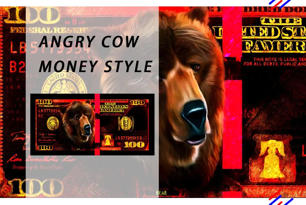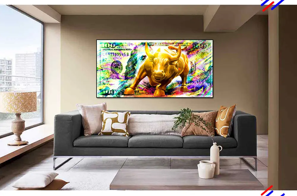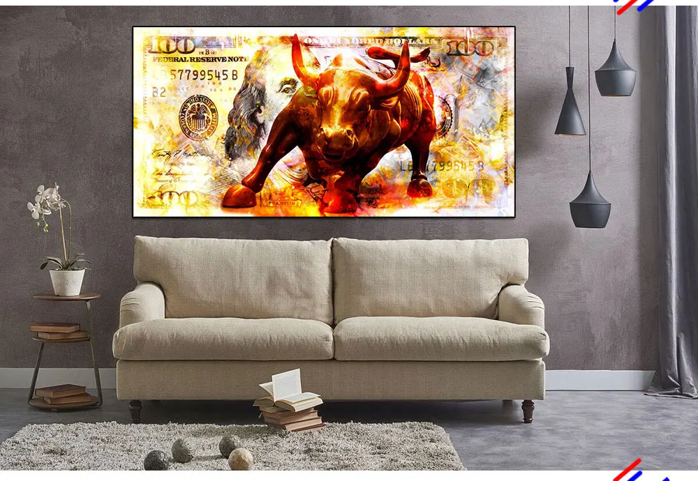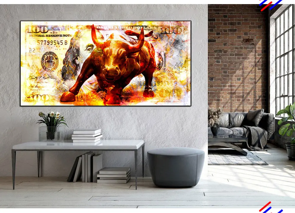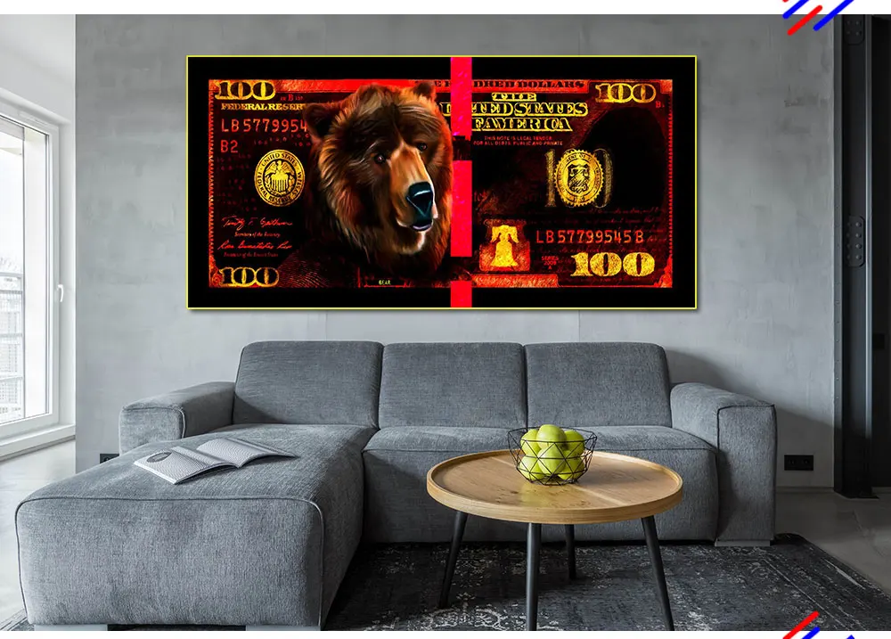 Зеленый бык красный медведь животное картина доллары цвет сердитая корова настенное искусство деньги плакат декоративная картина на холсте гостиная дом