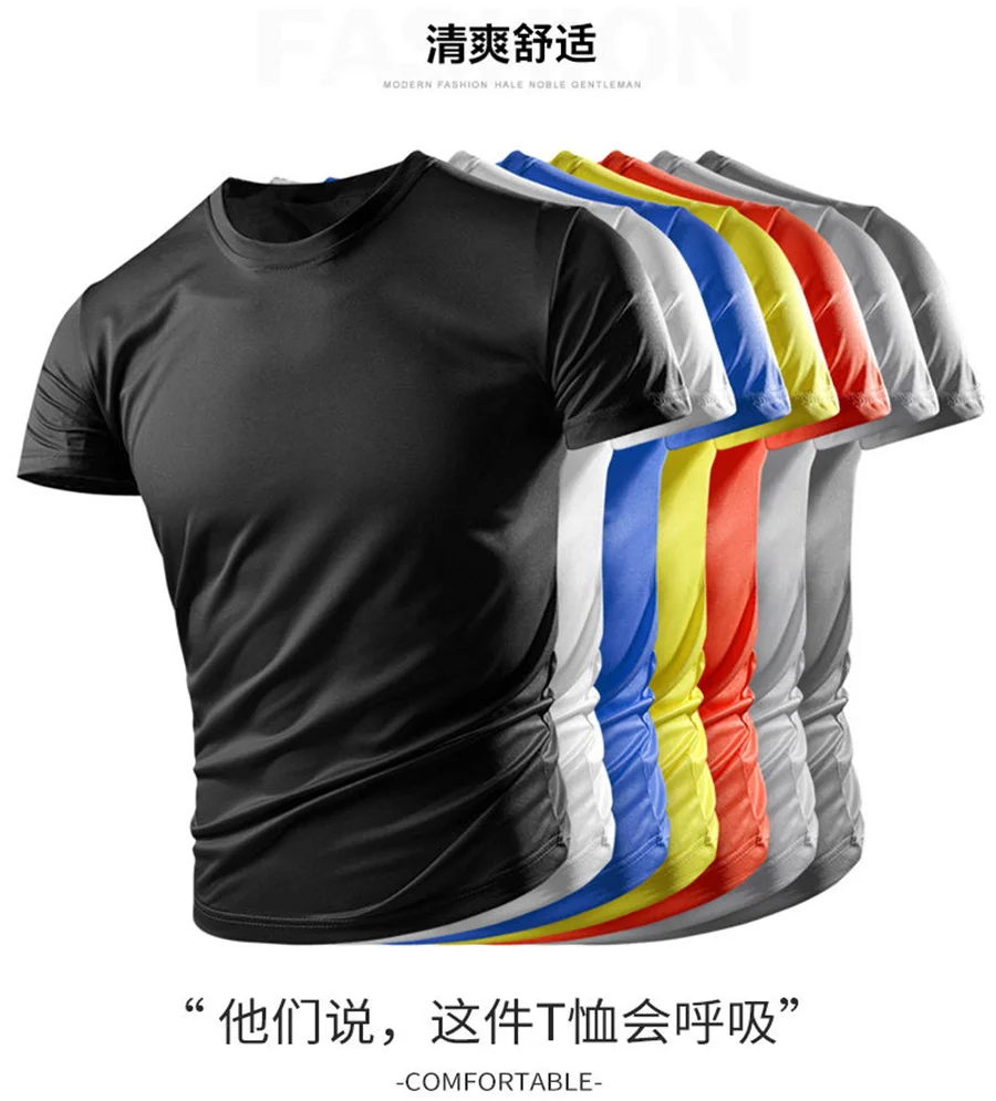Мужская Стильная летняя детская одежда на пуху футболки Ice Silk (искусственное волокно, футболки с коротким рукавом и изображением Спортивная холодной быстросохнущие сплошные Цвет дышащие свободные штаны размера плюс