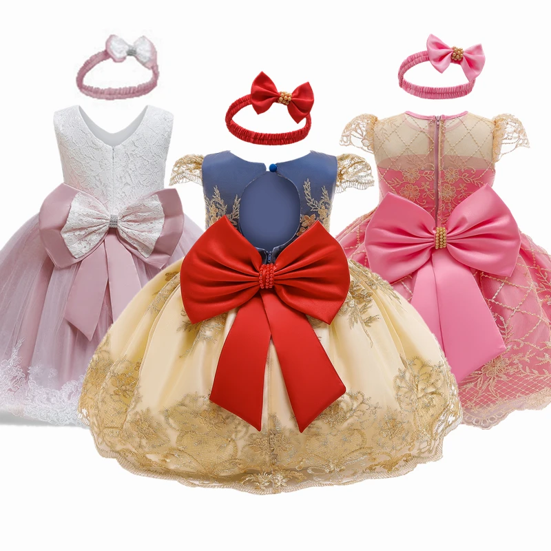 Платье на 1-й день рождения для маленьких девочек, одежда с бантом, детское платье принцессы Вечерние вечернее платье для крещения, рождественское платье для маленьких девочек