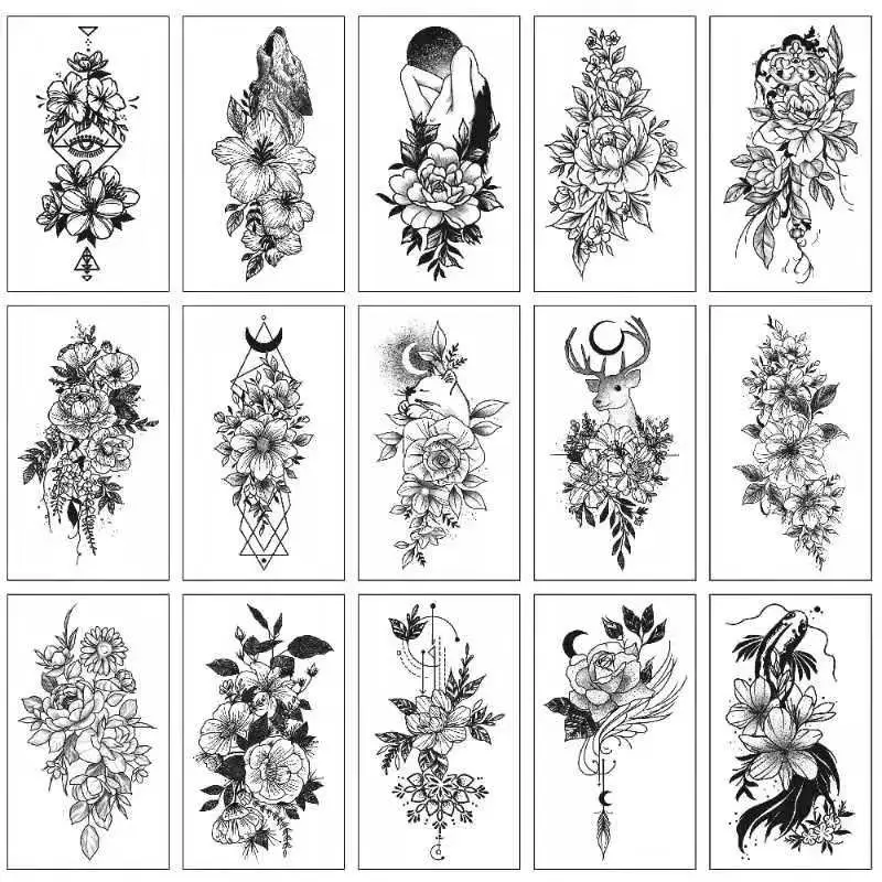 30 шт.лот модная женская имитация татуировки наклейка черные розы дизайн цветок рука боди-арт девушка временная татуировка наклейка маленькая