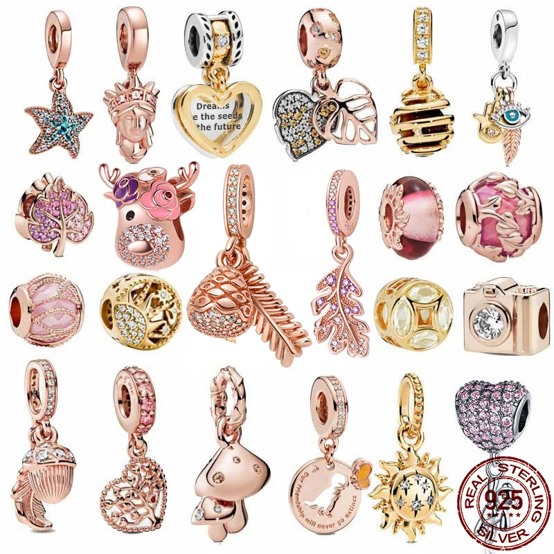 100% 925 стерлингового серебра в виде кленового листа из розового золота SeriesBeads, очаровательные, подходят к оригиналу Pandora, Браслеты браслет для Для женщин, ювелирное изделие, подарок