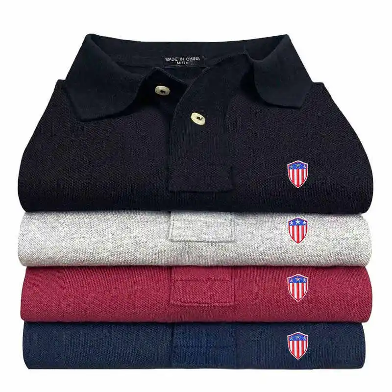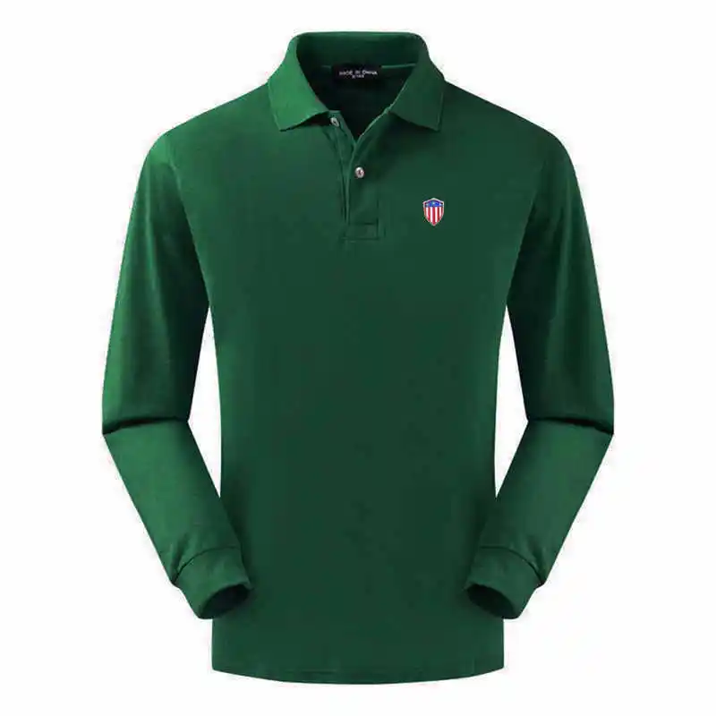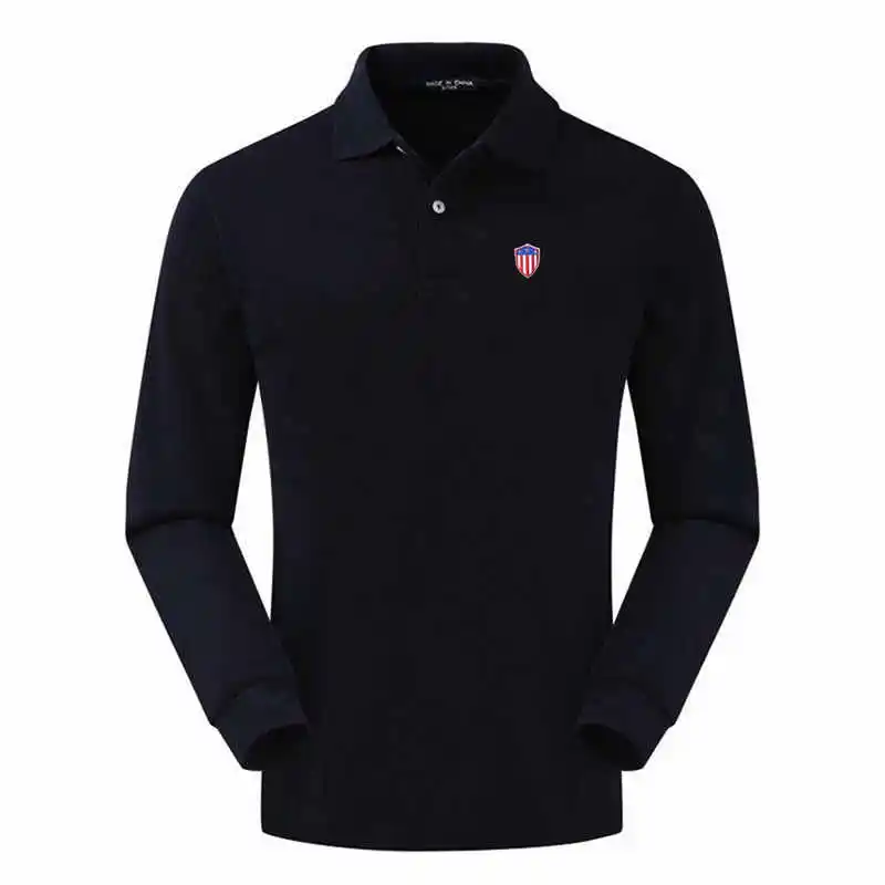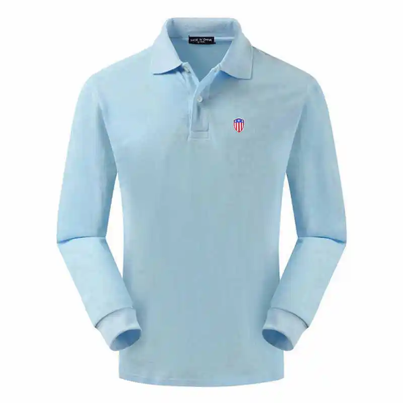 Мужская рубашка-поло с длинным рукавом, из натурального хлопка