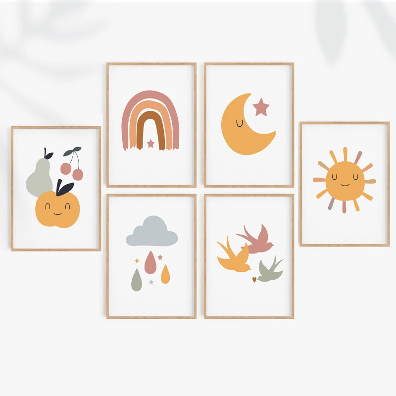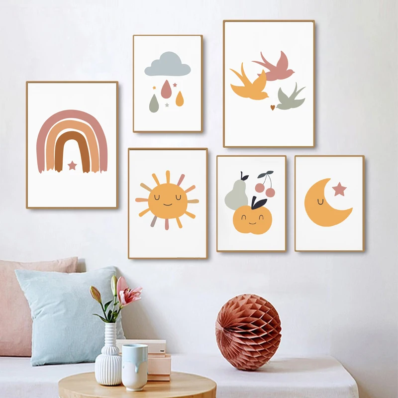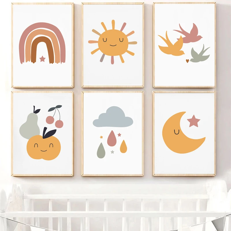 Плакаты и принты с изображением Луны, радуги, с изображением солнца, звезд, настенное украшение для детской комнаты