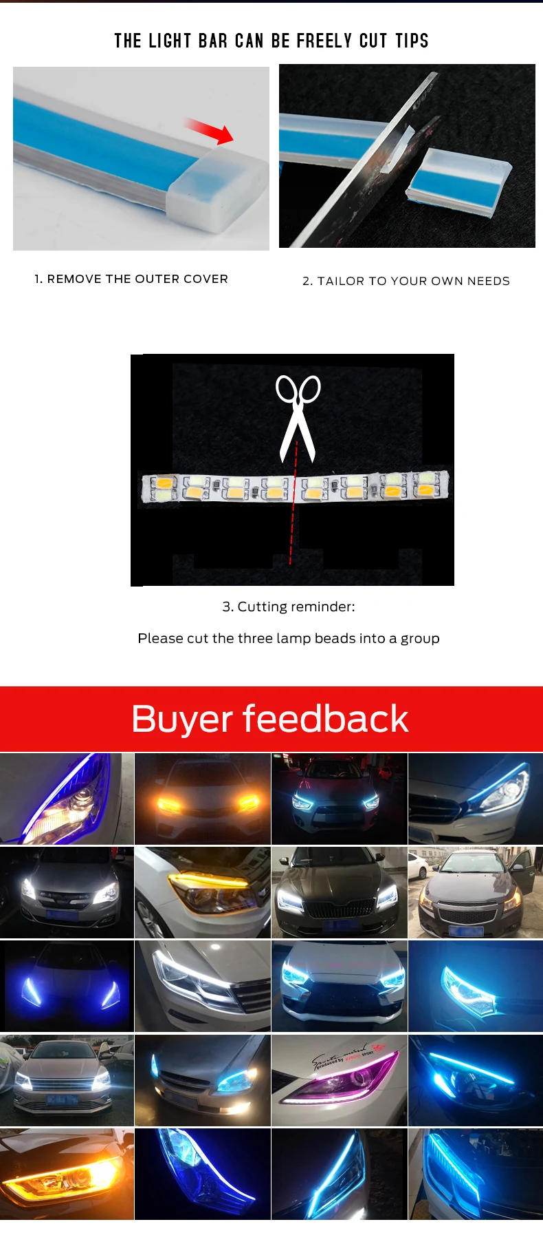 attribute2Car LED Strip White Red Turn Signal Yellow Waterproof