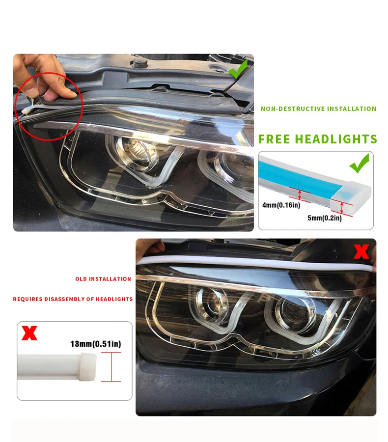 Дневные ходовые огни Гибкая мягкая трубка направляющая светодиодный...