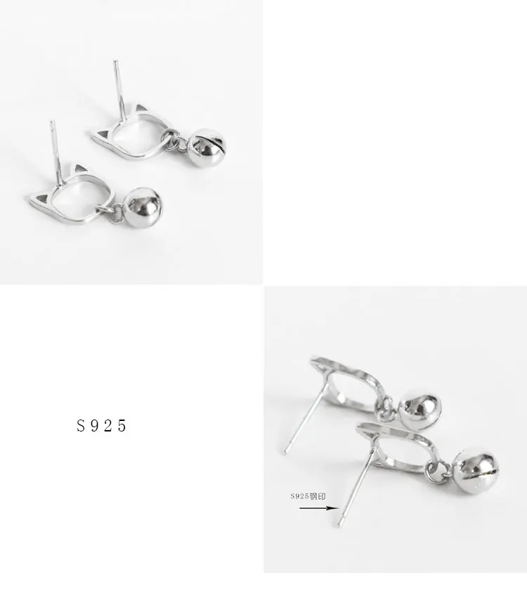 Ла Monada висит 925 Серебряные серьги для Для женщин минималистский Кот 925 стерлингового серебра Серебряные серьги-гвоздики маленький колокольчик ювелирных изделий для Для женщин