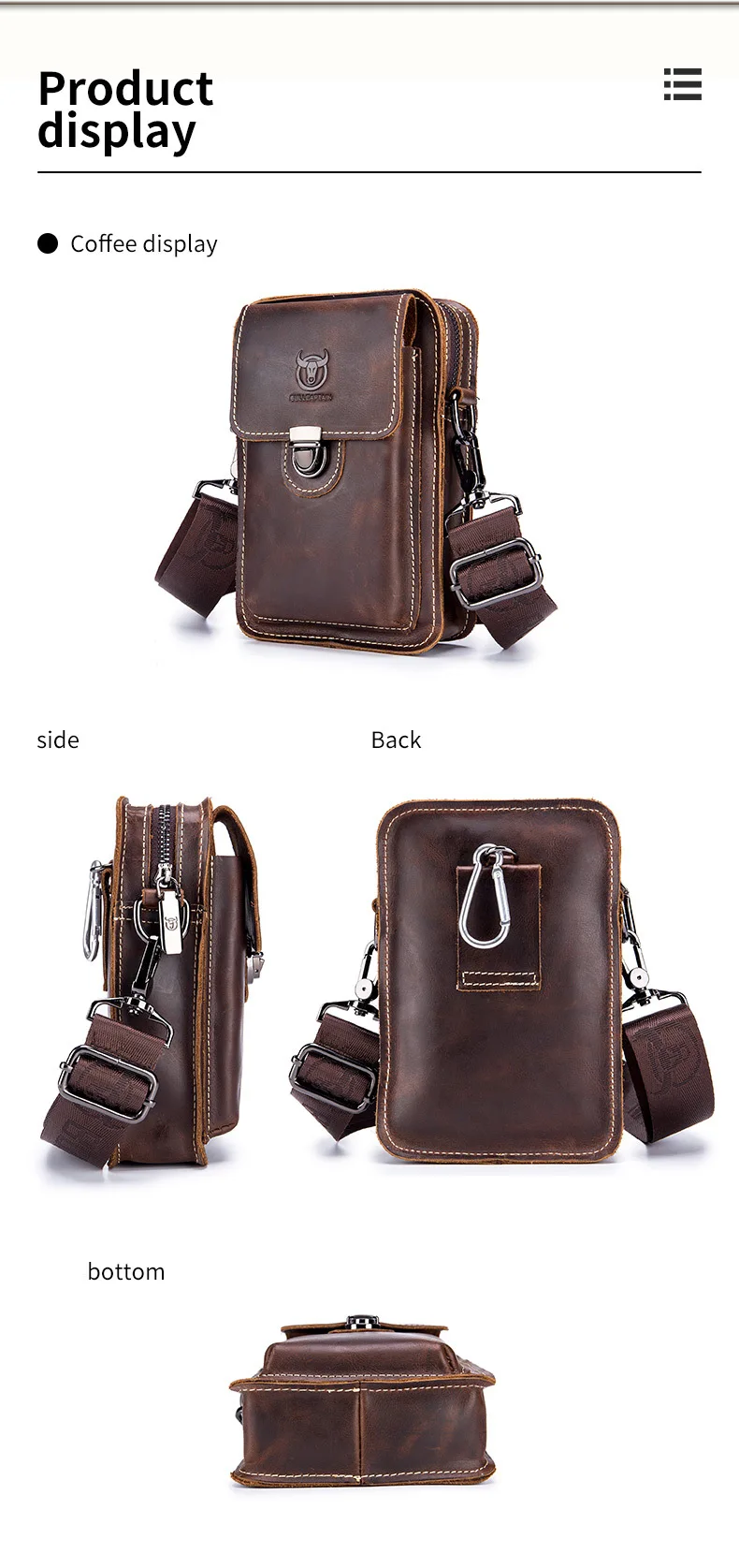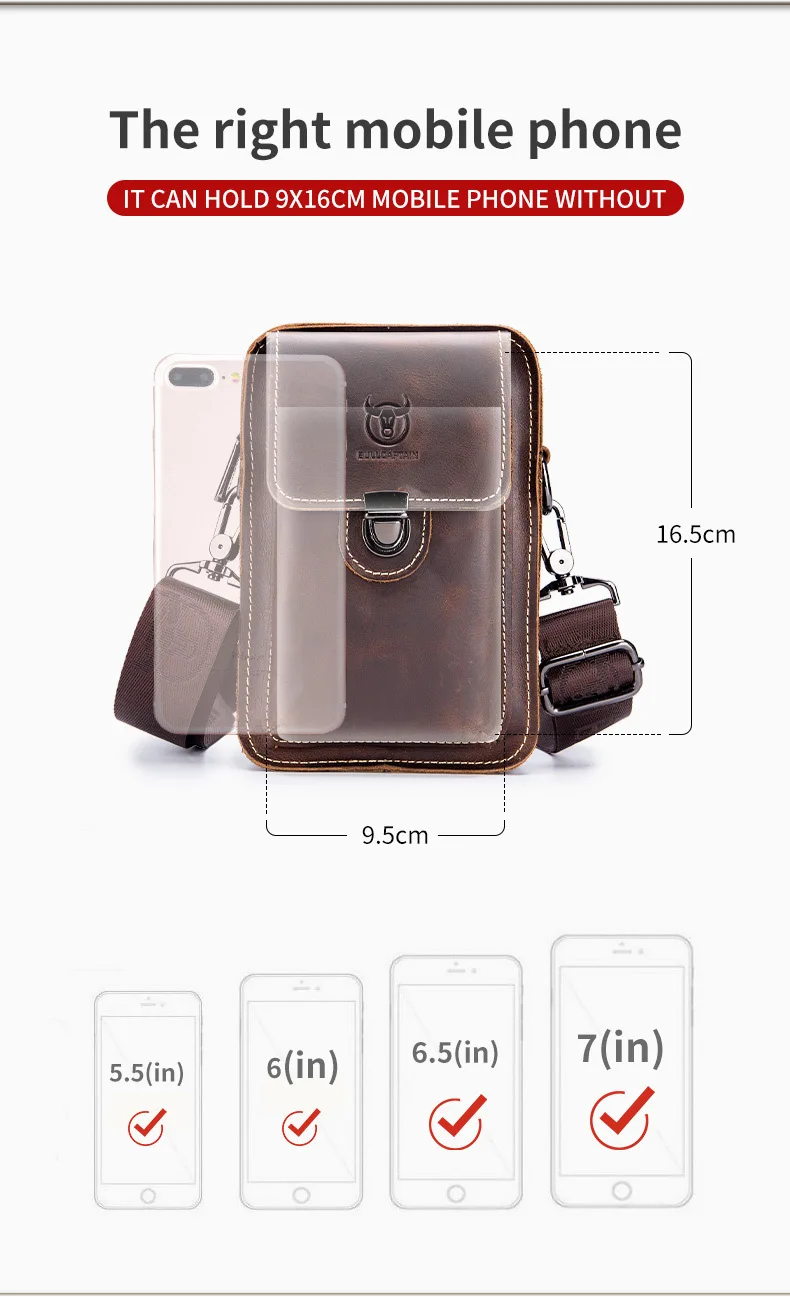 Кожаный мужской поясной кошелек BULLCAPTAIN Crazy Horse, Сумочка для телефона, маленькая нагрудная сумка на плечо, рюкзак