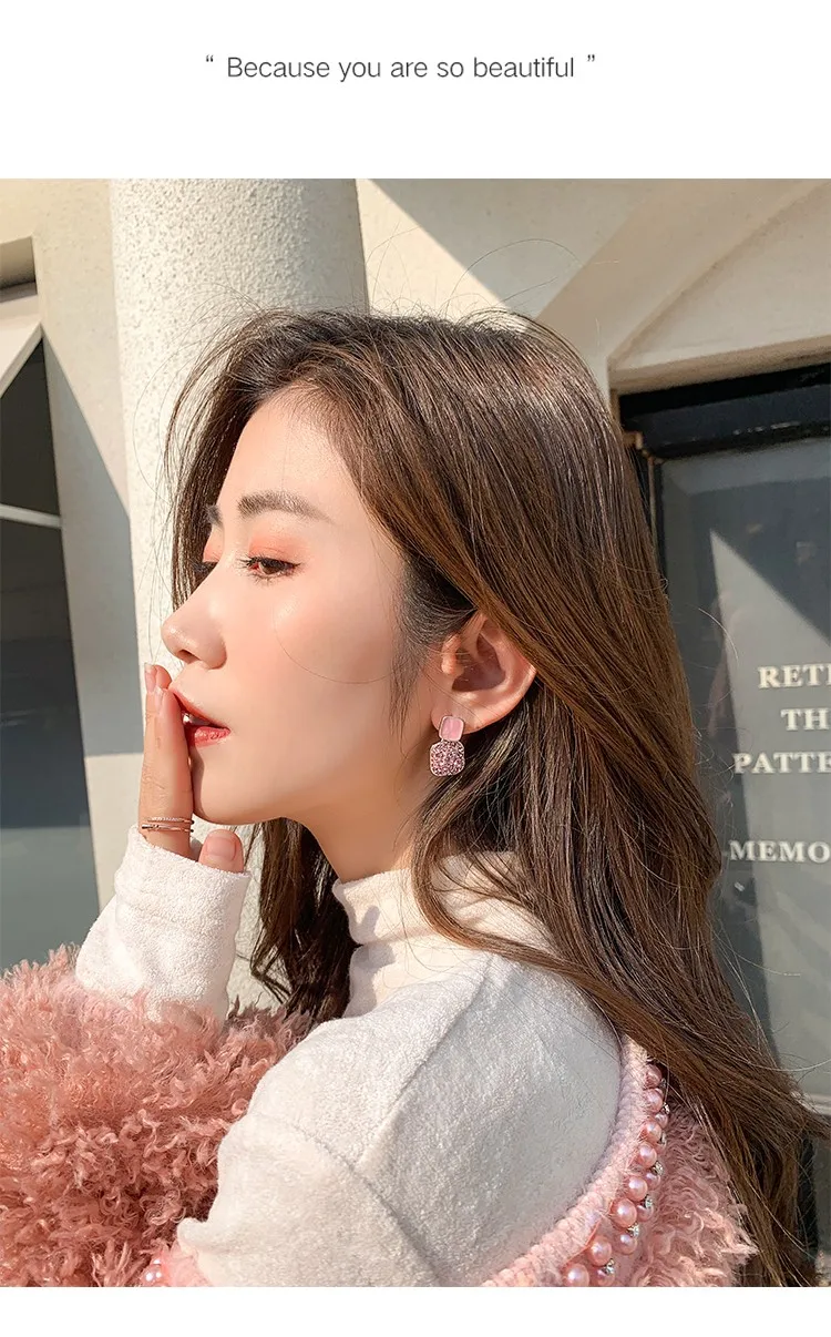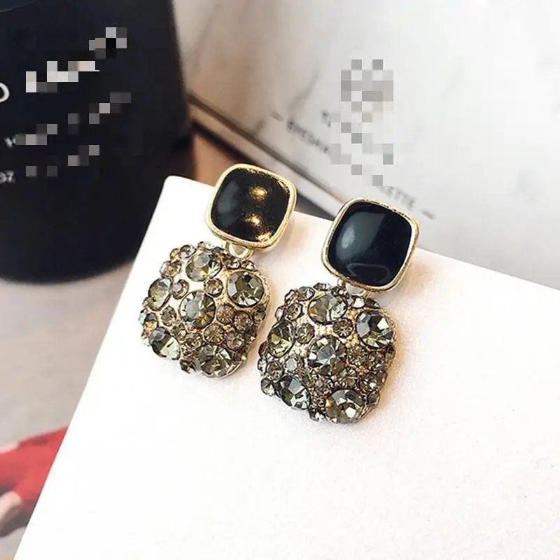 Серебряная игла S925 разных цветов в стиле ретро, Новый Модный Чистый Красный темперамент квадратные серьги с кристаллом, подарок для студентов колледжа, ювелирные изделия