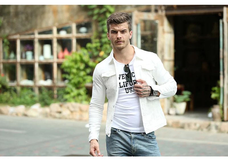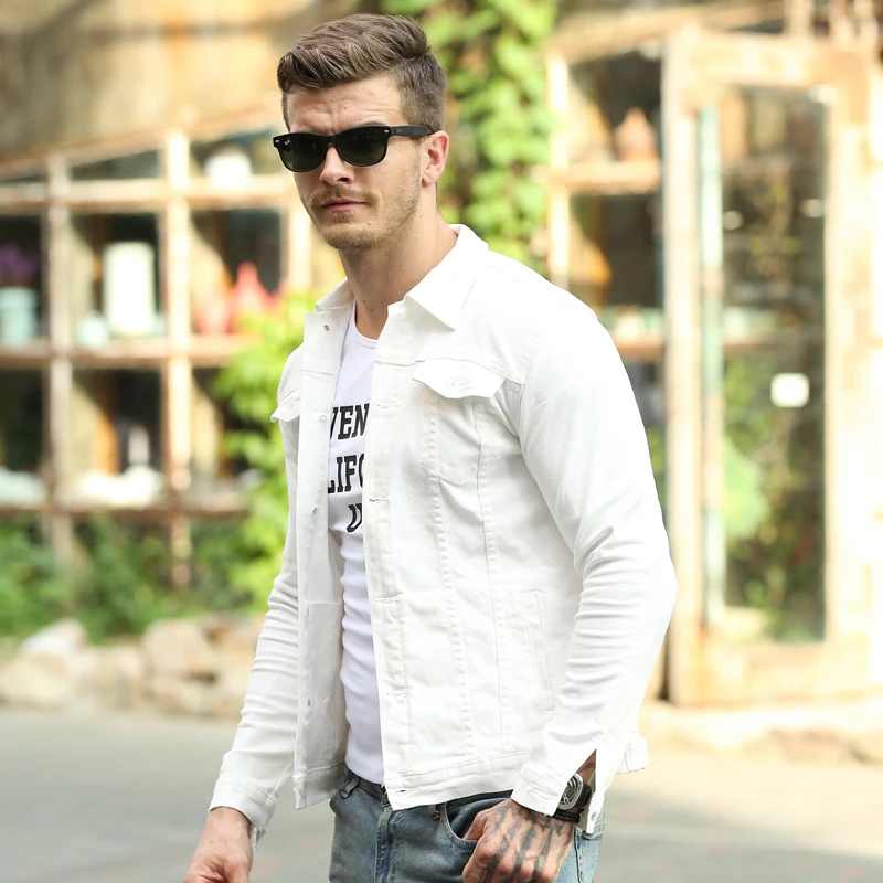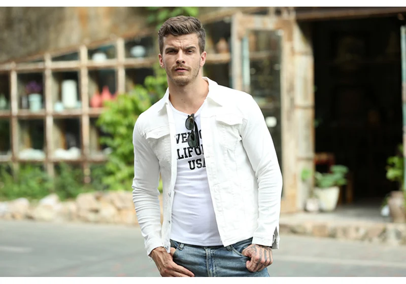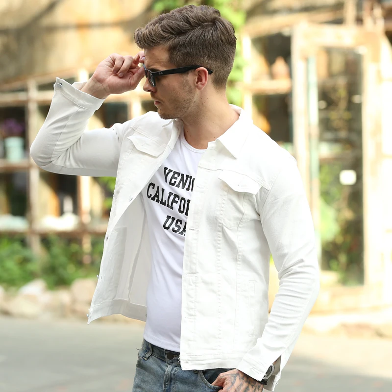 Уличная одежда, повседневные эластичные хлопковые пальто, модные мужские куртки, облегающая простая дизайнерская джинсовая куртка в Корейском стиле для отдыха для мужчин
