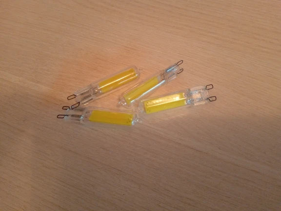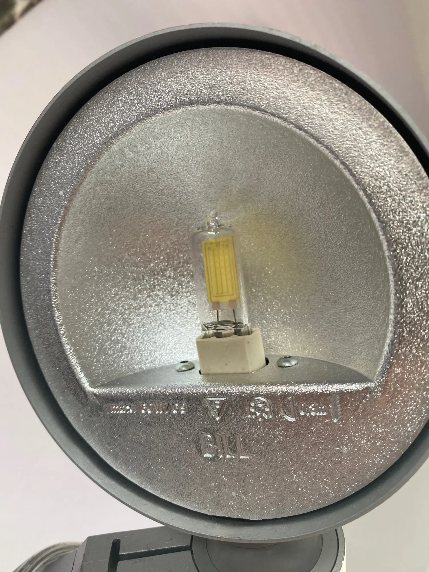 Заказали теплую белую лампу 15 Вт, они примерно в два раза ярче, чем галогенные 35 Вт, но также в два раза больше Почти не сумел поместить их в место Лампа из стекла, хорошая конструкция, я доволен