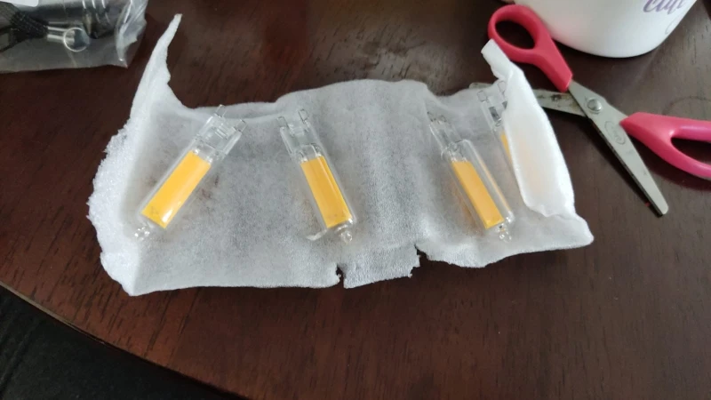 Завернутый в пузырчатую пленку 1 фитиль Или разбитое стекло в углу, но они работают 2 хорошо