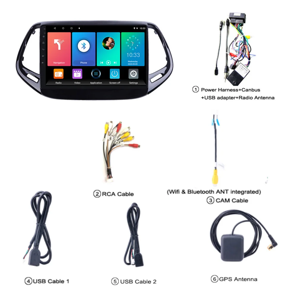 Автомобильный мультимедийный плеер BT, для JEEP Compass 2017 2018 4G CARPLAY 10,1 дюйма, 2 Din, Android, радио, Wi-Fi, GPS-навигация, FM, Bluetooth