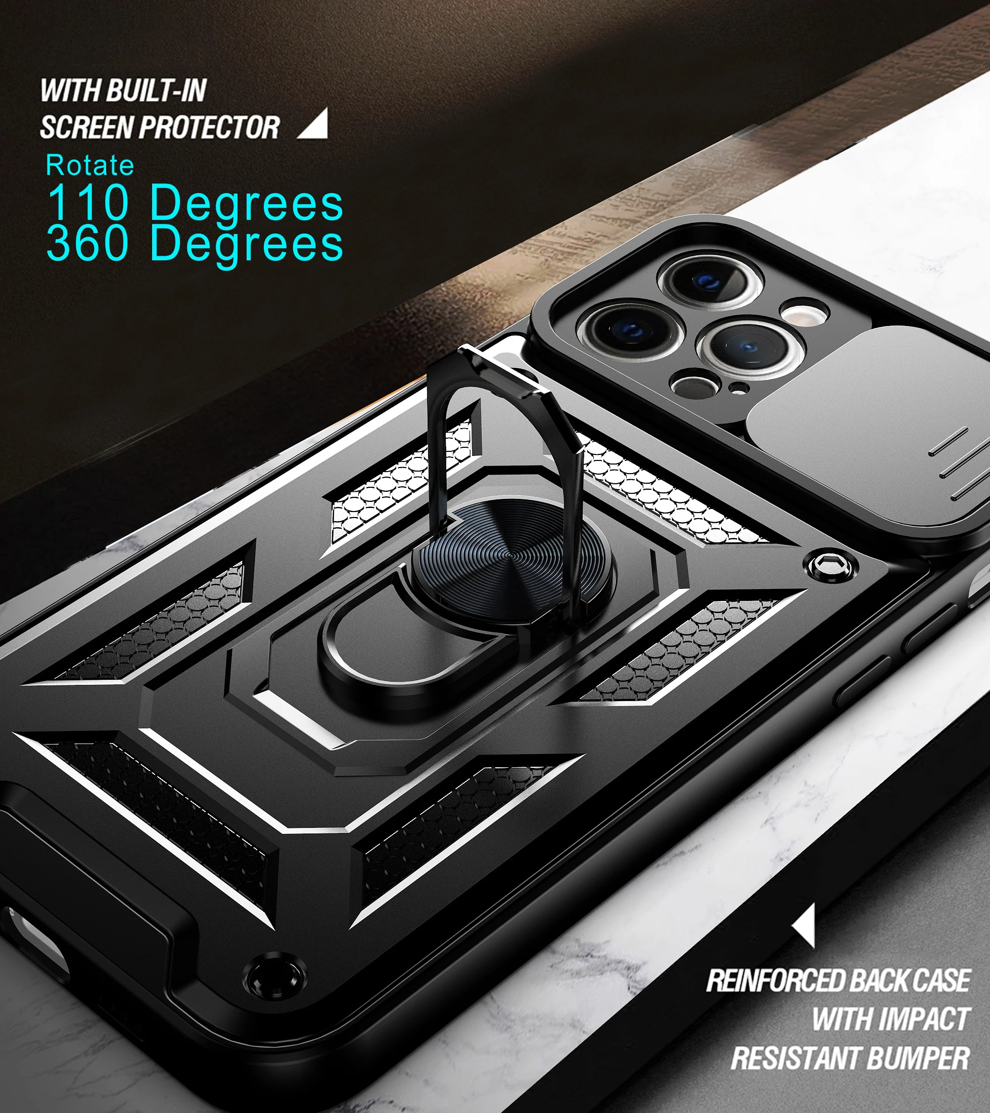 Features2021 Push Window Camera Protection Ring Stand Holder Shockproof Case