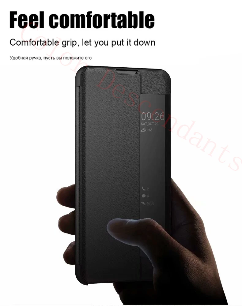 Флип-чехол Smart View для Huawei P10 P20 P30 40 Pro, кожаные магнит...