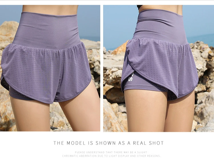 Женские сетчатые шорты для йоги 2 в 1, летние шорты с высокой талией для марафона и бега, быстросохнущие свободные шорты для тренажерного зала и фитнеса с широкими штанинами, одежда для спортзала