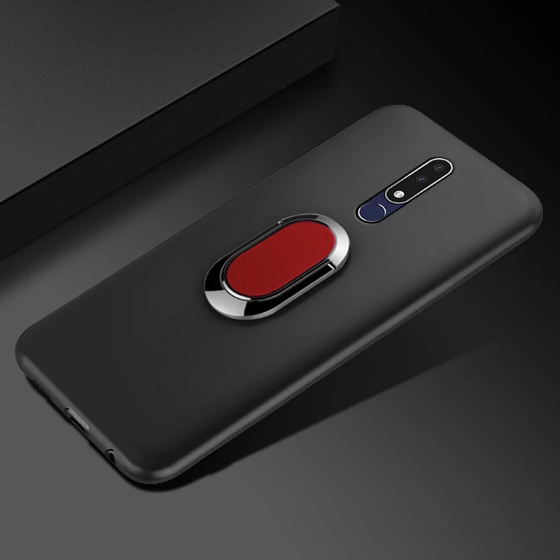 Чехол для Nokia 5,1 Plus чехол 5,86 "TA-1109 Nokia X5 2018 цвета: черный, красный, синий классический палец кольцо 360 градусов вращения и мягкого силикона