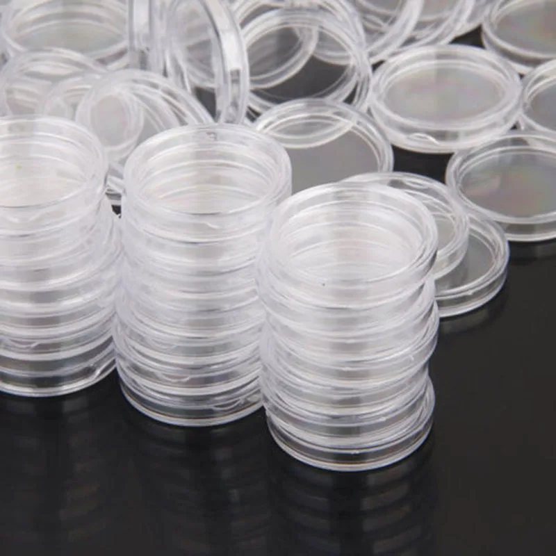 100 шт., прозрачный пластиковый контейнер для хранения, диаметр 20 мм