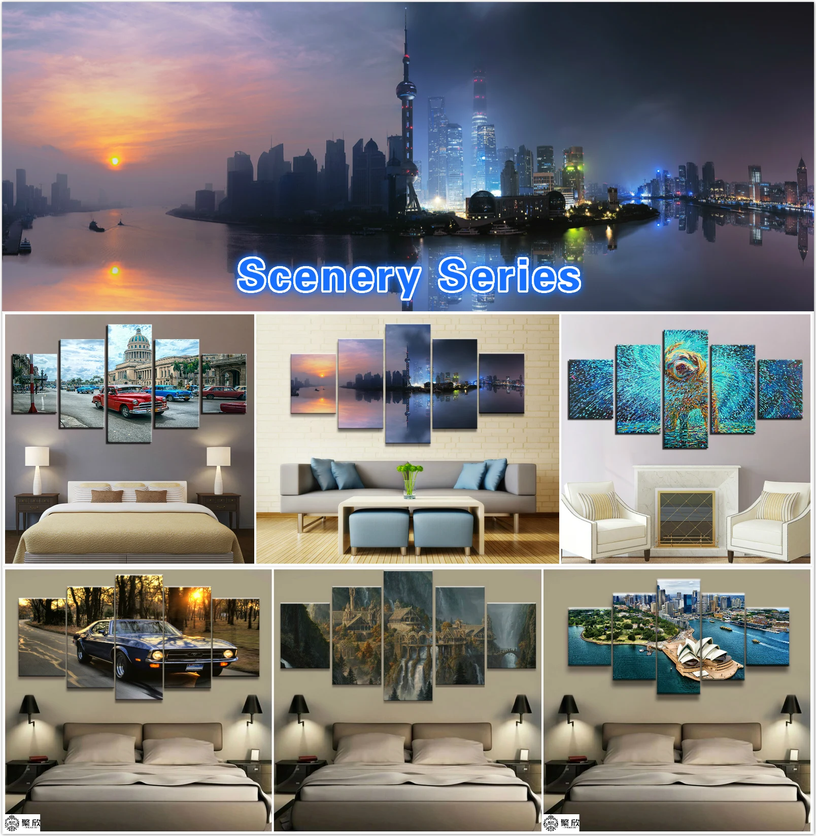 Картины на холсте HD, модульные, 5 шт., для декора гостиной