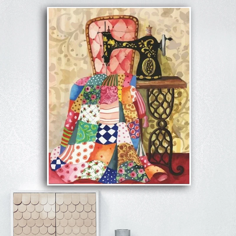 Набор для рисования по номерам YIJIE, швейная машинка на холсте, ручная роспись, подарок для творчества, украшение для дома