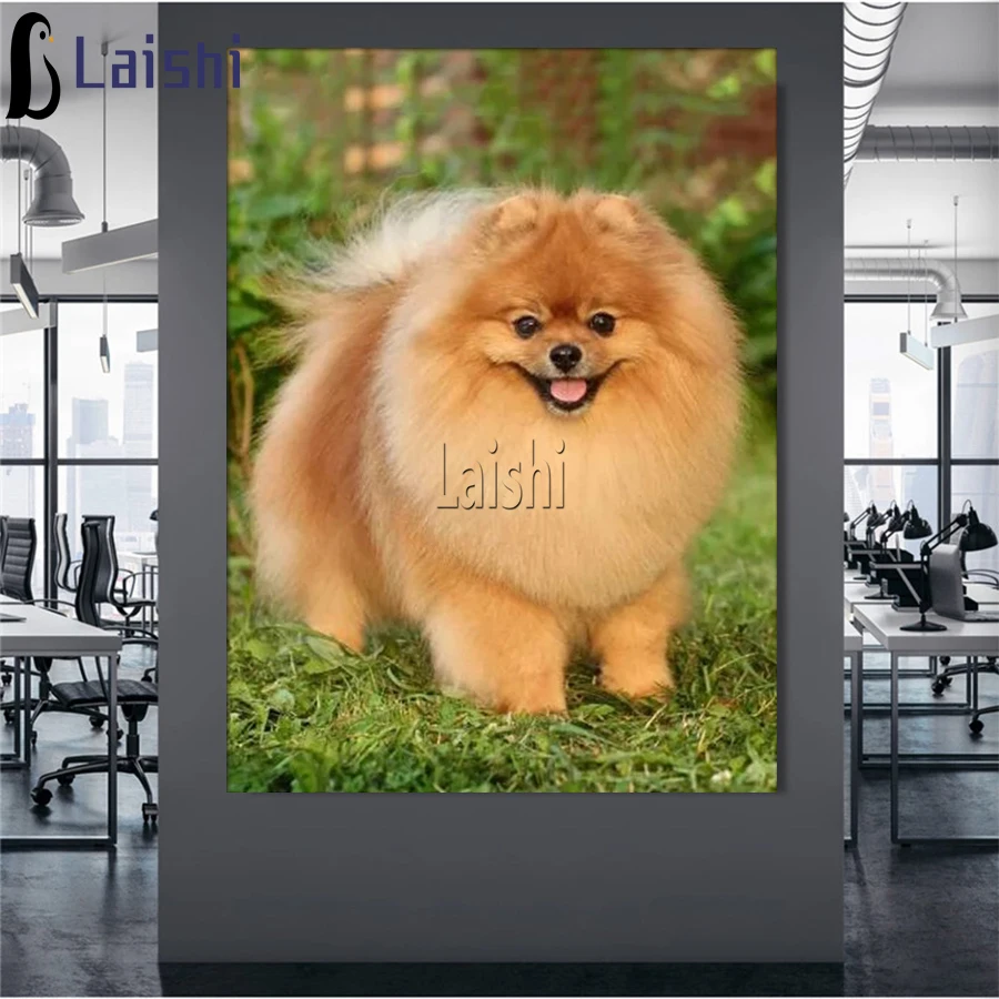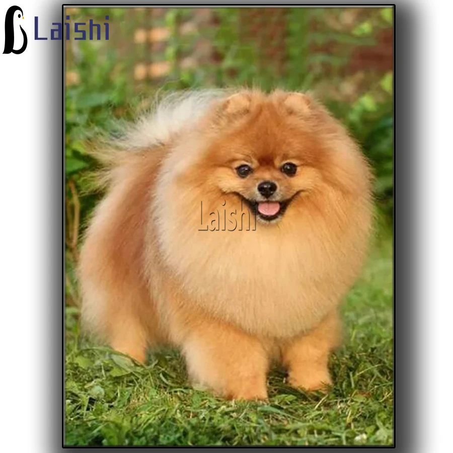 Мозаика с изображением собаки из померанского шпица, полноразмерная круглая картина из страз, вышивка стразами сделай сам, стразы с животными