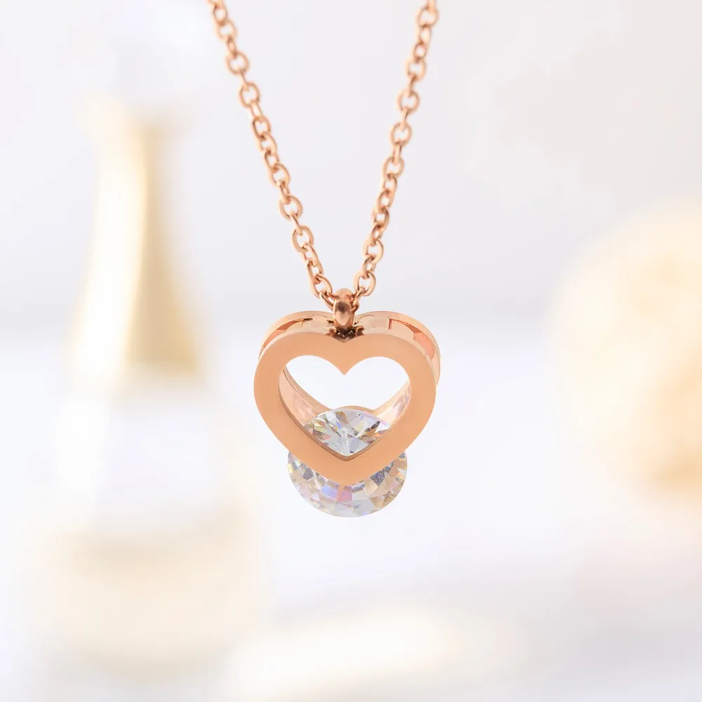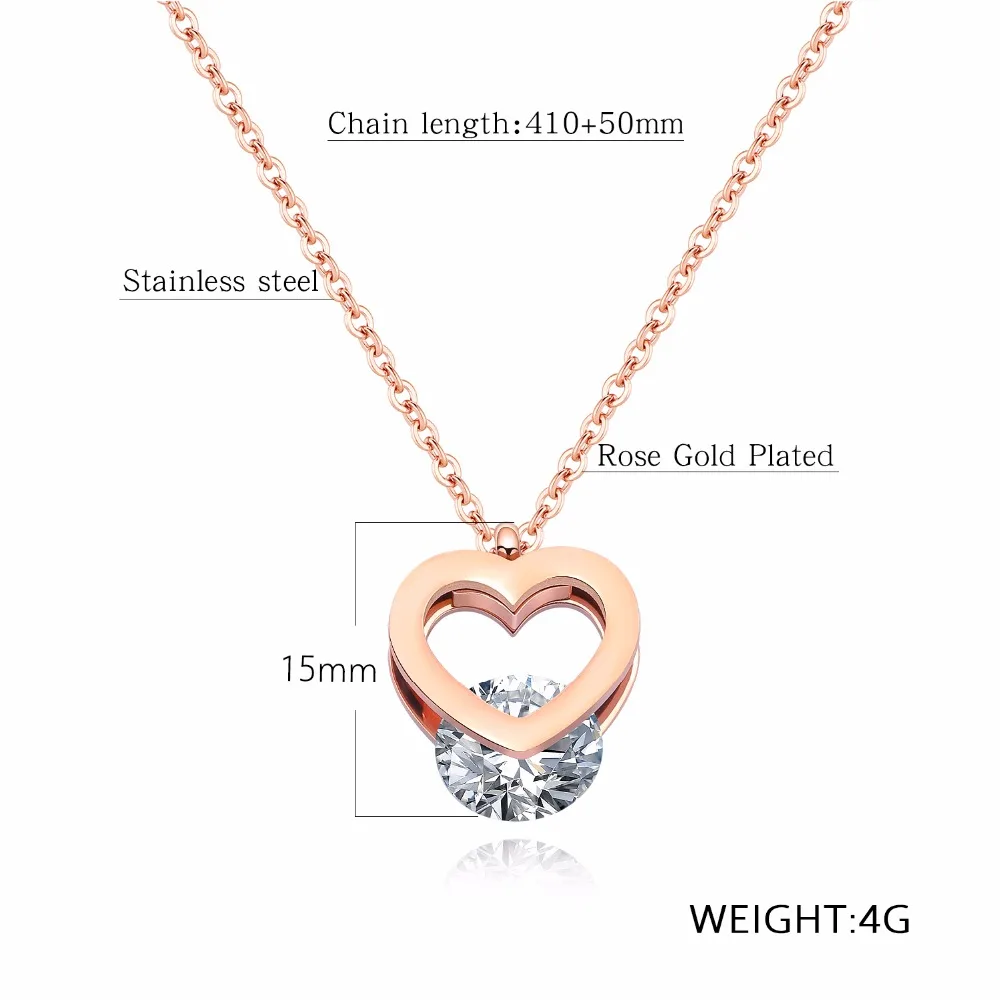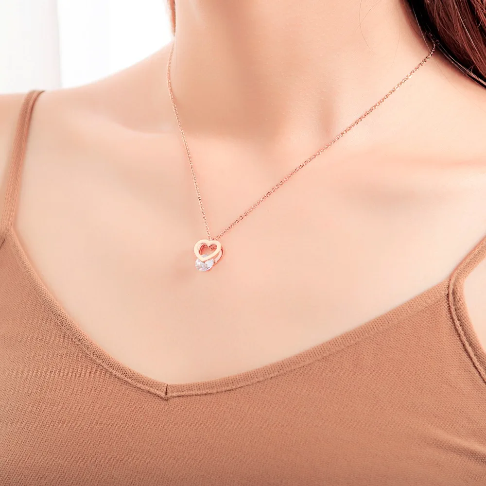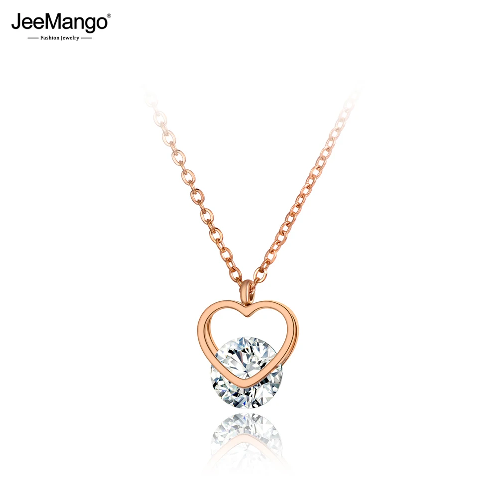 JeeMango, выполненное из нержавеющей стали, легированной титаном, розовое золото подвеска со стразами фианит ювелирные изделия двойной любящее сердце колье ожерелье для женщин подарок JN20056