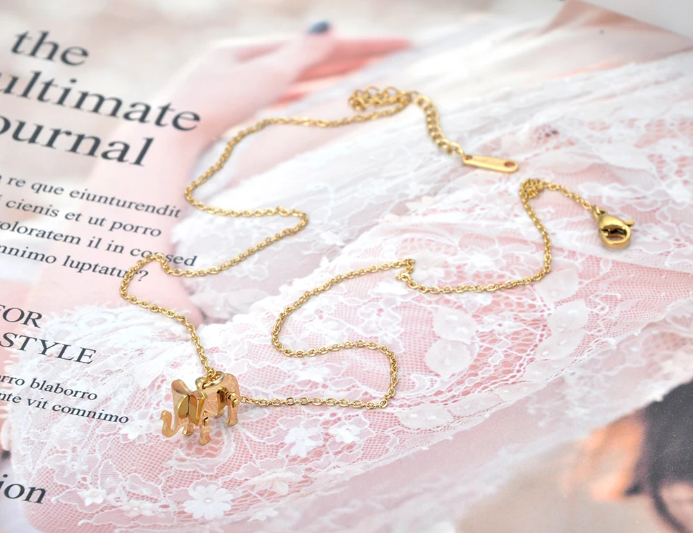 JeeMango, модное титановое очаровательное колье из нержавеющей стали, в виде слона, ожерелье в готическом стиле, кулон в виде животного, ювелирные изделия для женщин, Цепочка JN20033