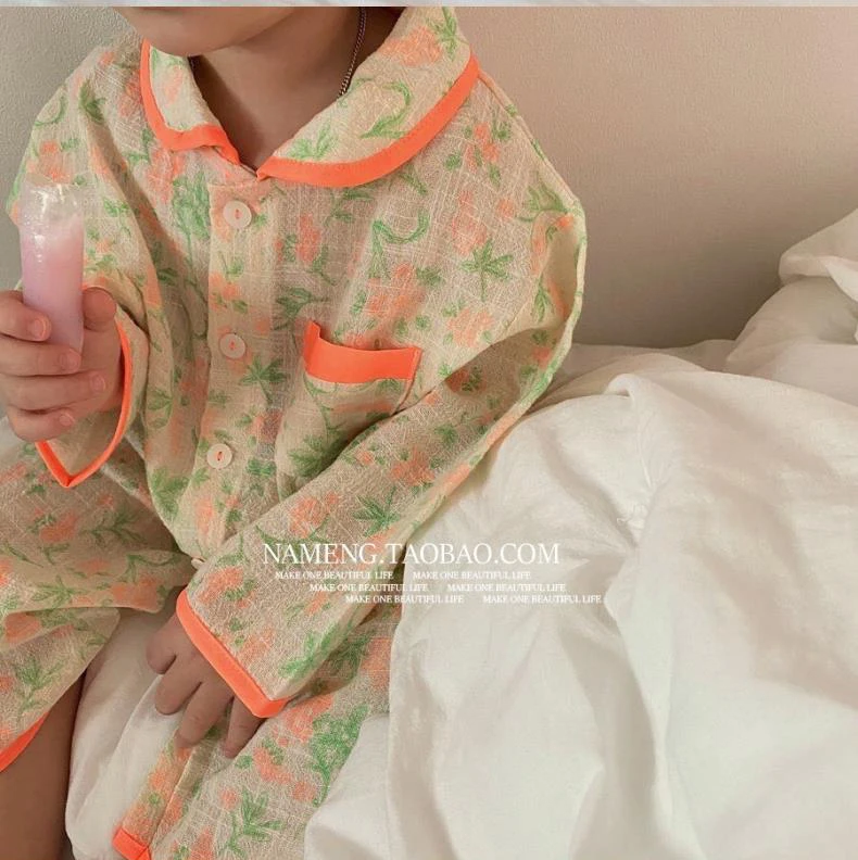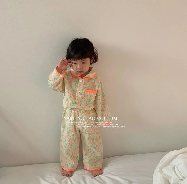 Детские пижамные комплекты флуоресцентных цветов с цветочным принтом; Винтажный пижамный комплект с цветочным принтом для маленьких девочек и мальчиков; Одежда для сна с цветочным принтом; Детская одежда