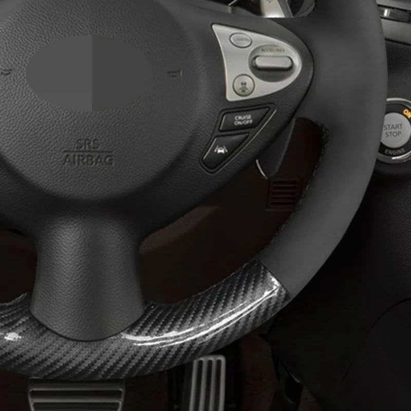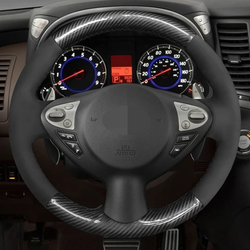 Чехол рулевого колеса автомобиля Черный углеродного волокна Черная замша для Infiniti FX FX35 FX37 FX50 QX70 Nissan Juke Maxima 370Z Sentra X-Trail SV