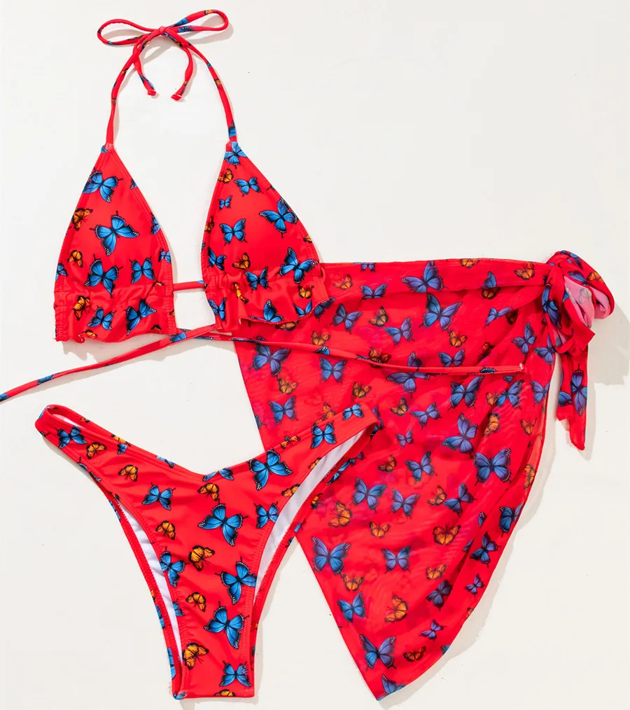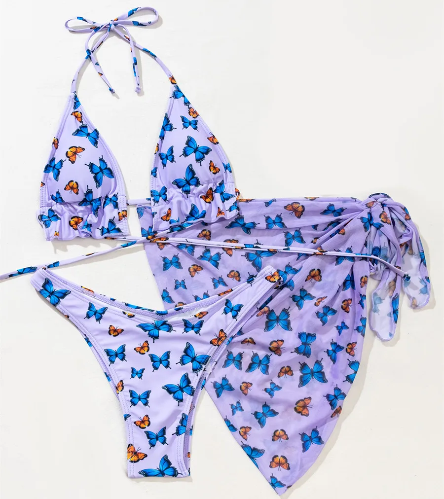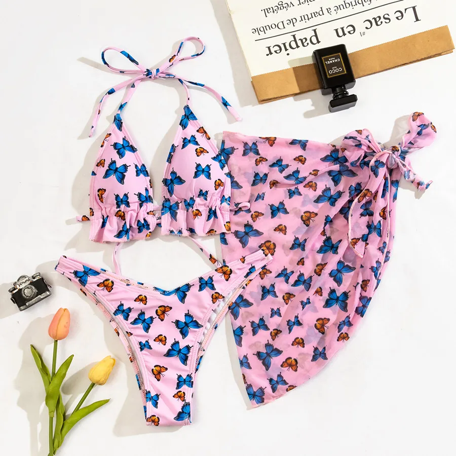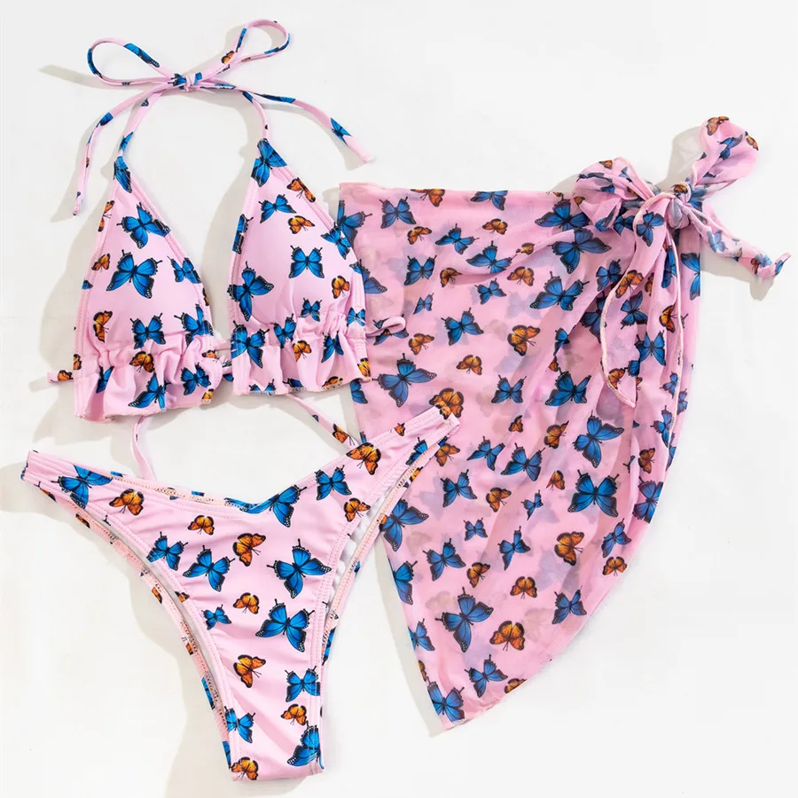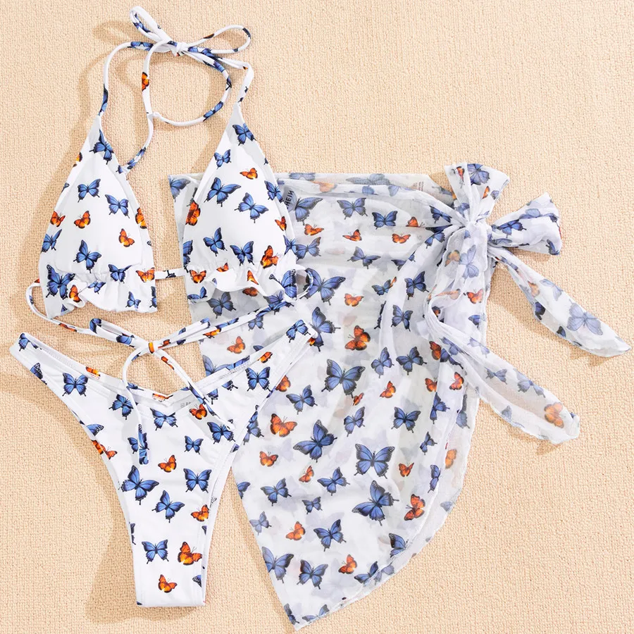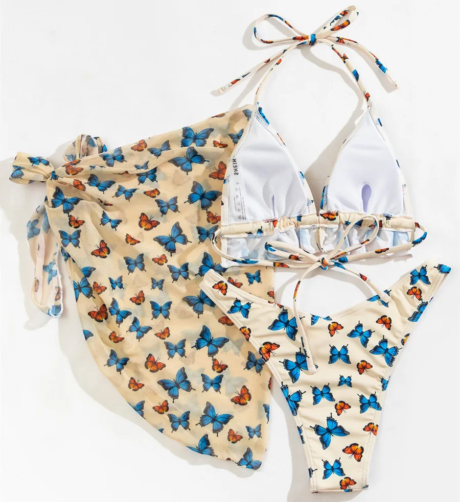 VIKINII горячие сексуальные бикини 2021 летние купальники с бабочками Женский комплект бикини из 3 предметов пляжная одежда женские купальники