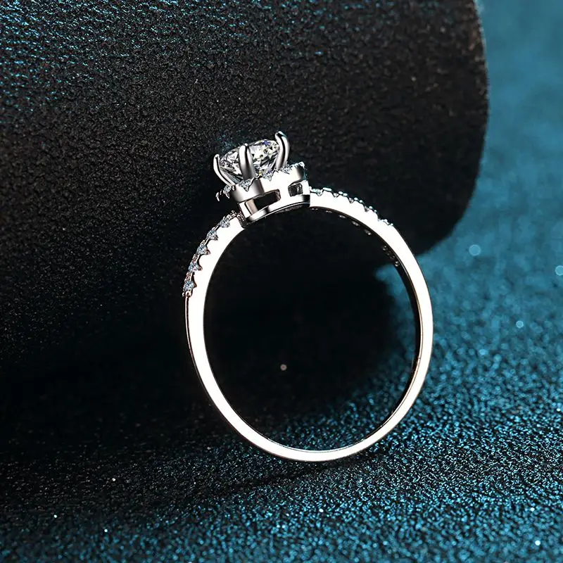 Кольцо женское из серебра 925 пробы с муассанитом и короной