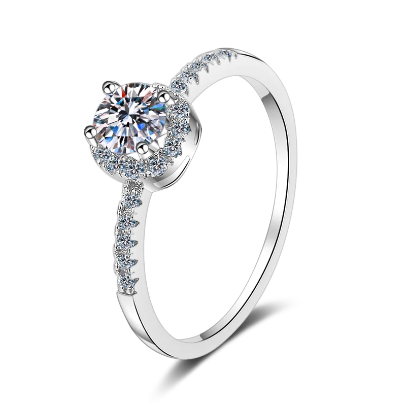 Кольцо женское из серебра 925 пробы, с муассанитом круглой формы
