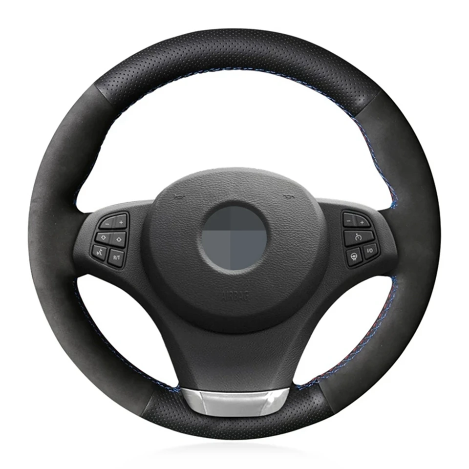Ручная сшивка Мягкий черного цвета из натуральной кожи и замши чехол рулевого колеса автомобиля для BMW E83 X3 2003-2010 E53 X5 2004-2006