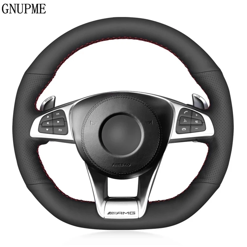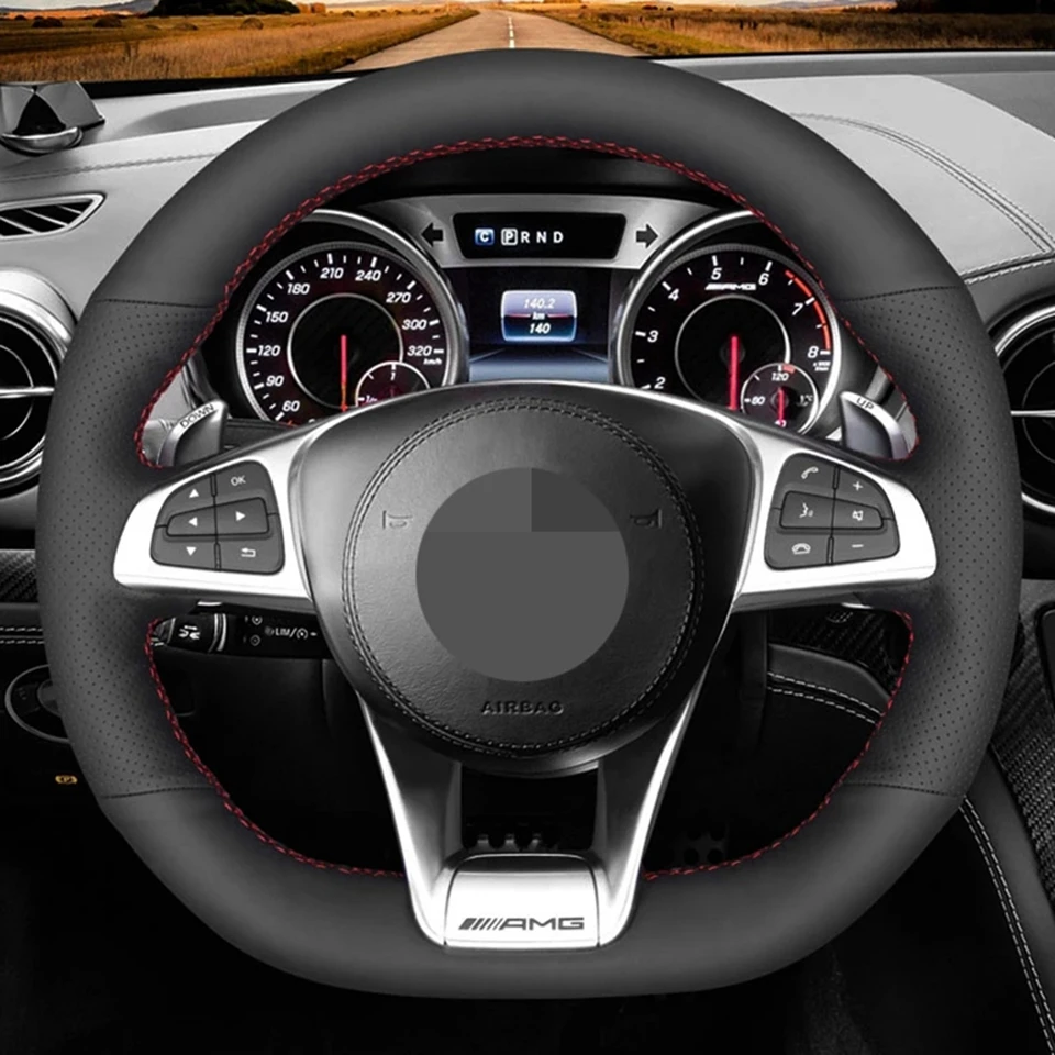 Рука сшитый черный искусственной кожи чехол рулевого колеса автомобиля для Mercedes-Benz A 45 AMG 2016-2018 C 43 63 AMG CLA 45 2015