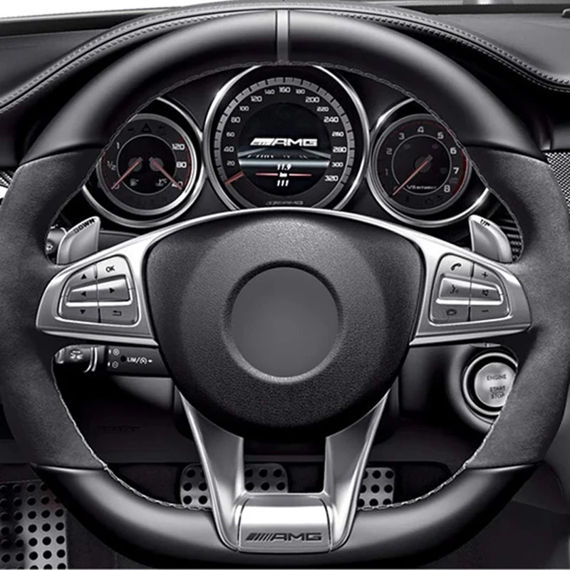 Черная замша кожаный чехол рулевого колеса автомобиля для Mercedes ...