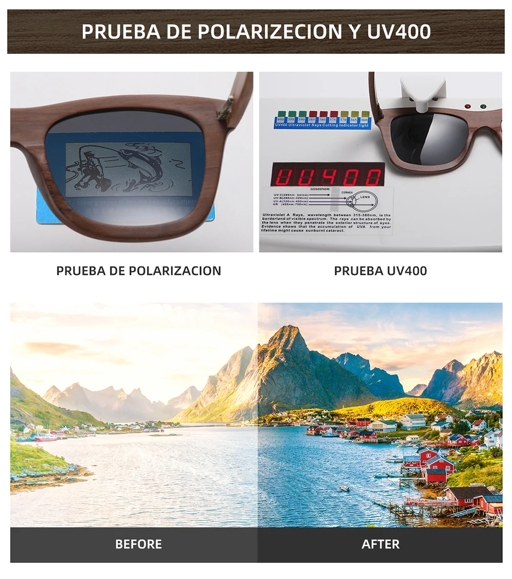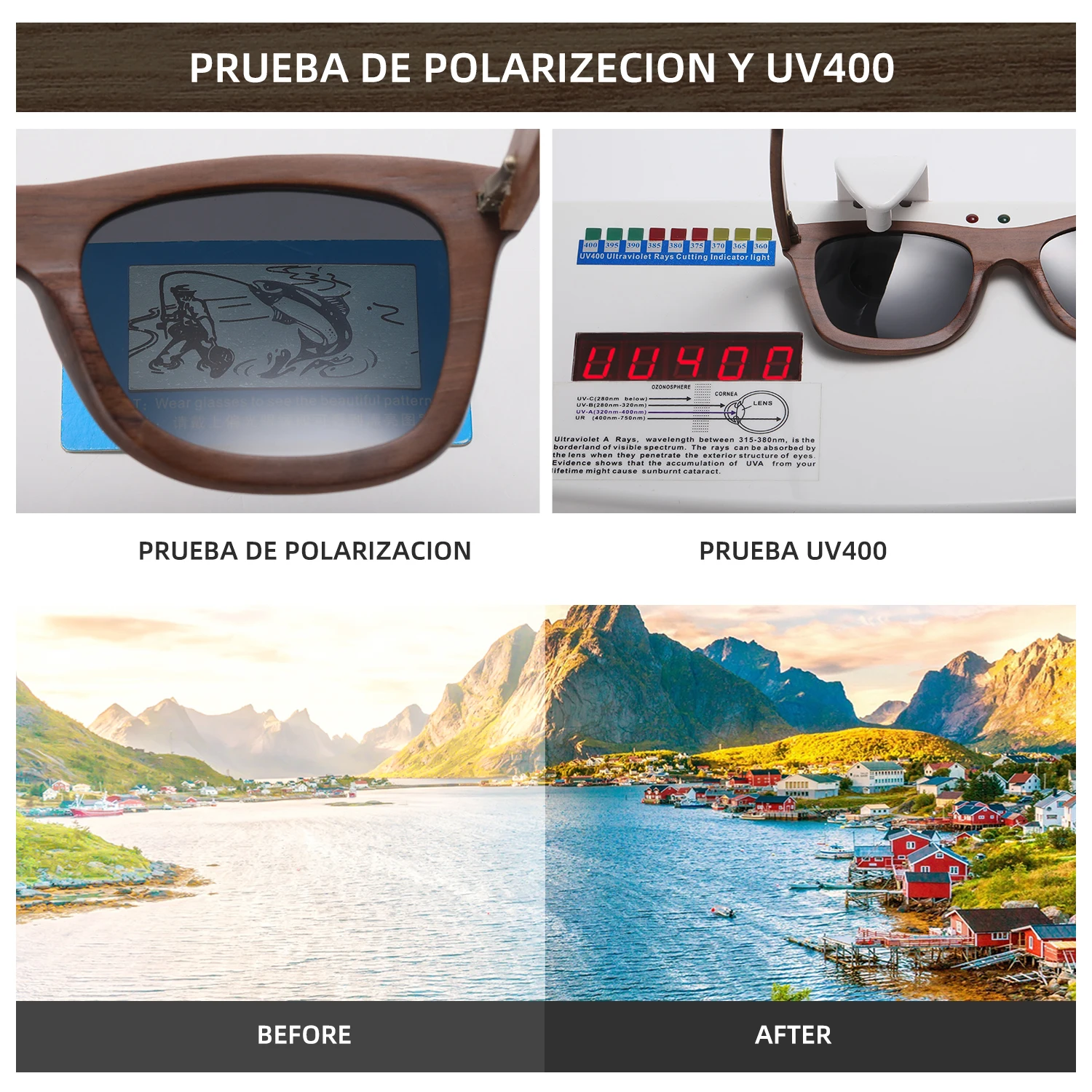 Солнцезащитные очки с бамбуковыми дужками, поляризационные, UV400