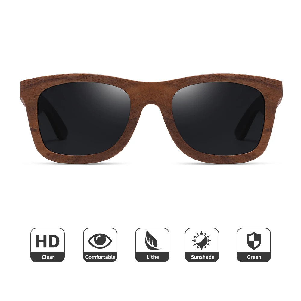 Мужские солнцезащитные очки с деревянными дужками, в квадратной оправе