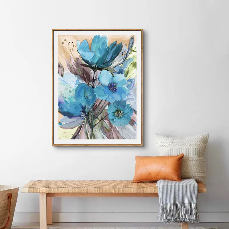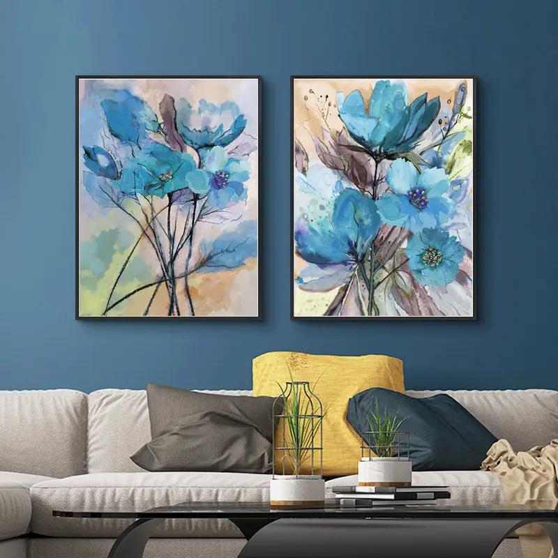 Акварель фиолетовые синие цветы постеры стены искусства холст Карти...