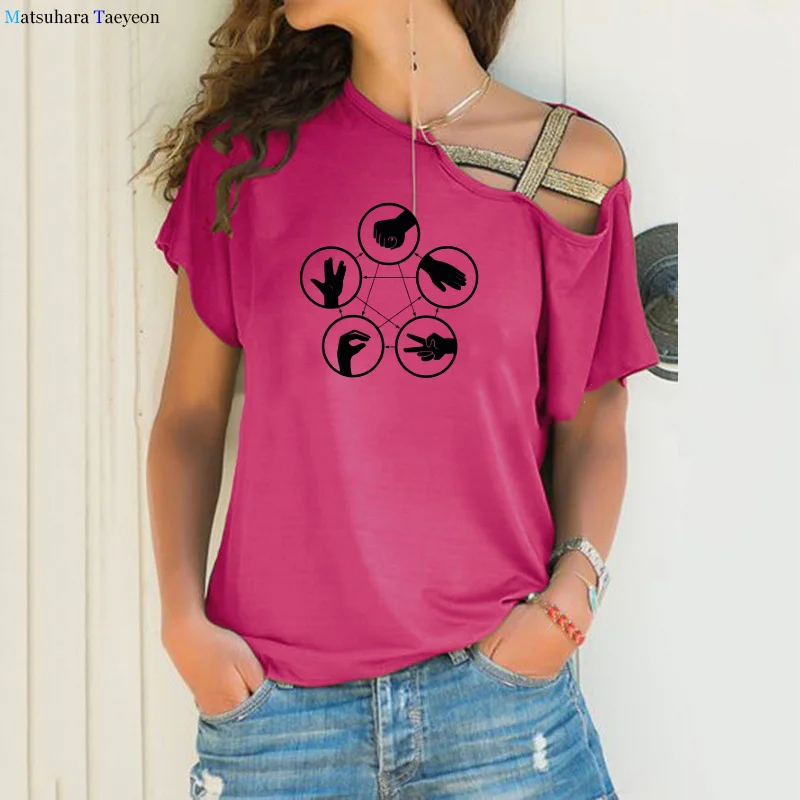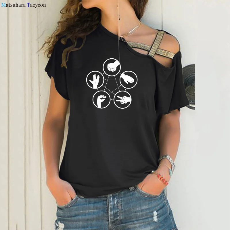Женская футболка с коротким рукавом The Big Bang, Хлопковая женская футболка с изображением героев мультфильмов пальцев, асимметричные перекрестные бандажные футболки, топы